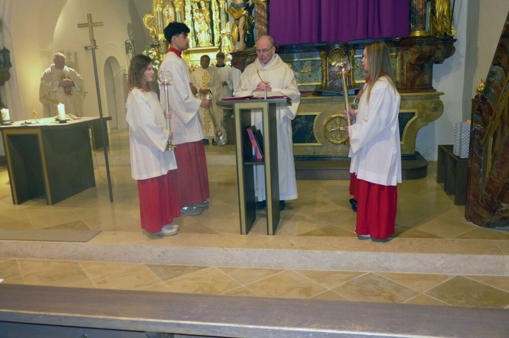 Den ganzen Tag des Festes “Mariä Verkündigung” war im Rahmen der “Ewigen Anbetung” die Pfarrkirche stets mit betenden Gläubigen besetzt. Auch die MMC Tegernheim gestaltete eine Anbetungszeit kurz vor dem Festgottesdienst. Zu Beginn wurde bei meditativen Gedanken das Allerheiligste betrachtet. Danach wurde der Rosenkranz von den sieben Schmerzen Mariens gebetet.