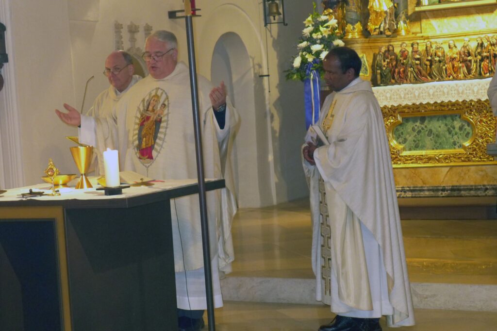 Den Festgottesdienst, der zugleich das Jahrtagsamt der MMC Tegernheim war, zelebrierte der Zentralpräses der MMC Regensburg, Monsignore Thomas Schmid zusammen mit dem Pfarrvikar Dr. Nanduri unter Assistenz von Diakon Walter Karger aus Donaustauf.