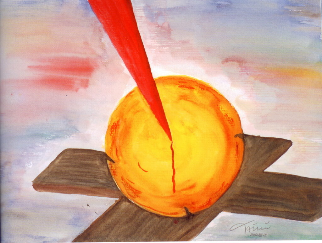 aufgespießt am Kreuz.